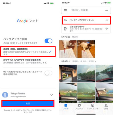 Googleアカウントを持っている方は、無料の「Googleフォト」を利用して、iPhone写真バックアップが簡単にできます。Googleフォトに写真をバックアップする手順は以下のようです。