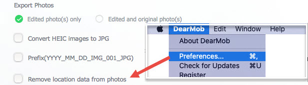 - When toggled on, DearMob iPhone Manager will remove photo location data when exporting photos from iPhone to computer.