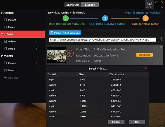 Step 3: Click Download icon on the main interface of 5KPlayer and click "Paste URL & Analyze" to start analyzing the URL.